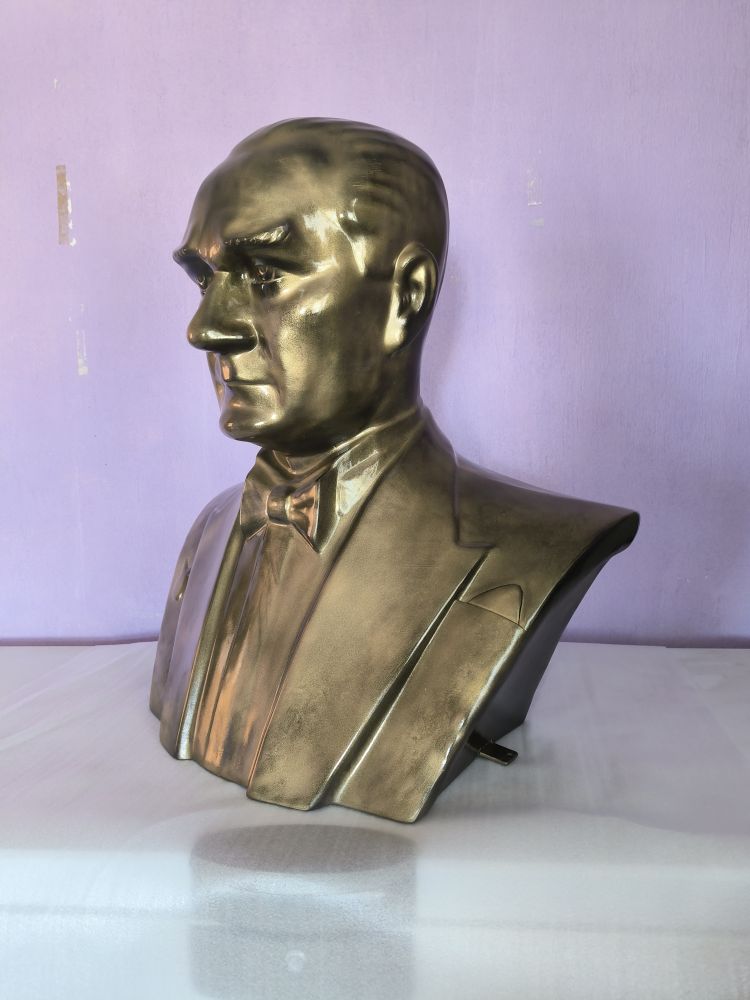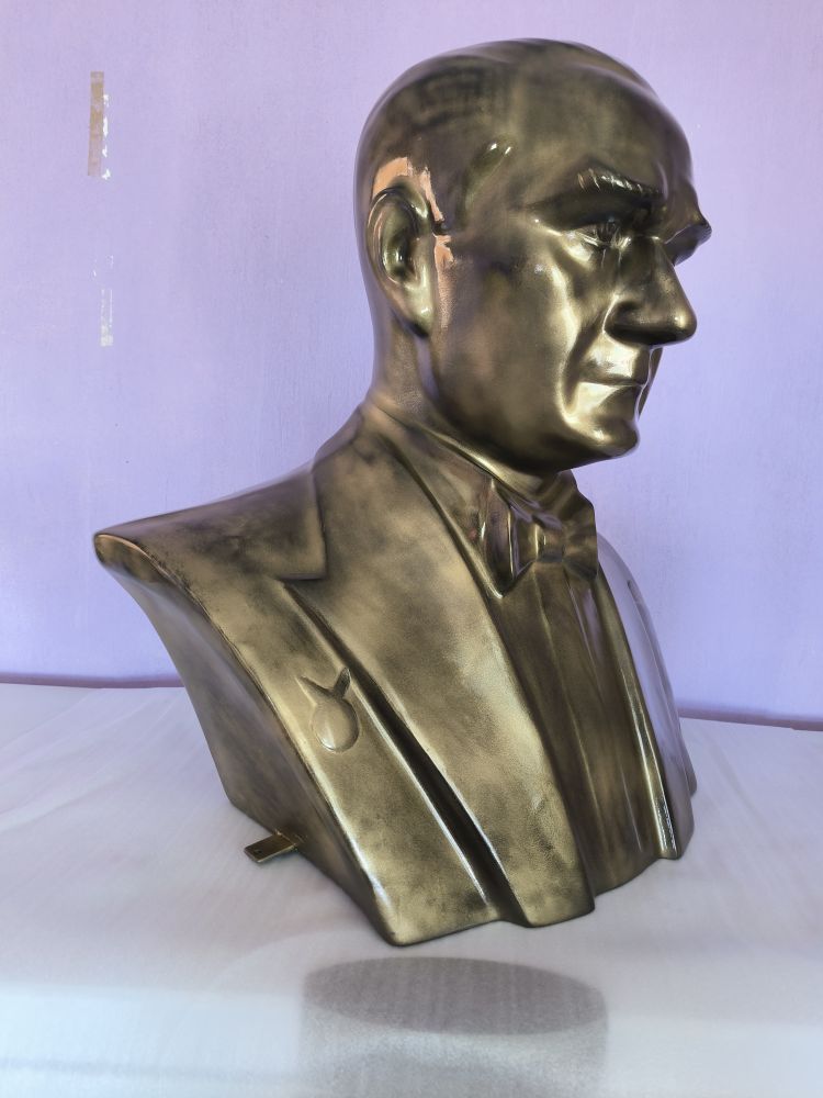Eskitme boyalı 80 cm papyonlu kapal Atatürk büstü